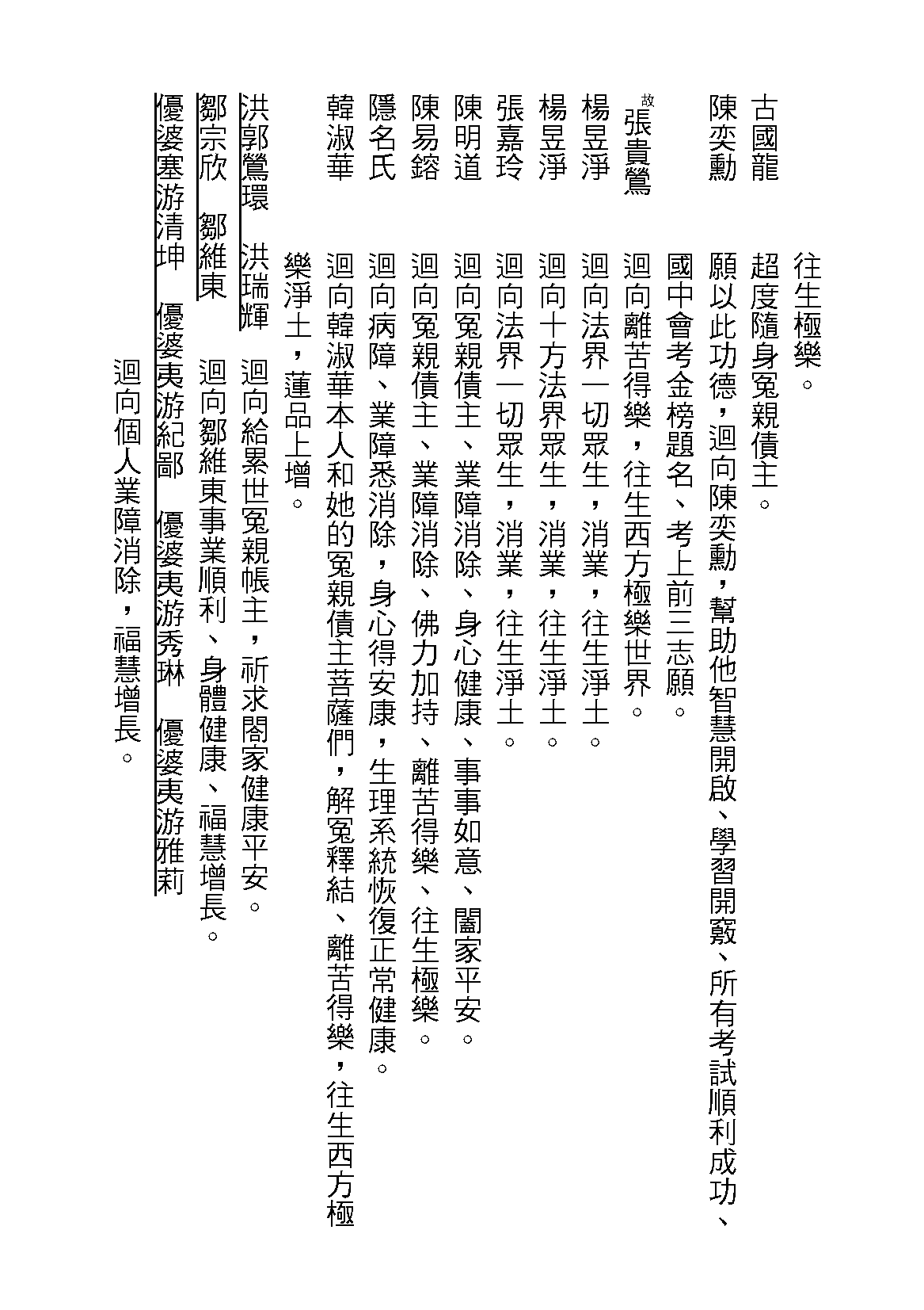 (優婆塞游清坤 優婆夷游紀鄙 優婆夷游秀琳 優婆夷游雅莉)-迴向個人業障消除,福慧增長。